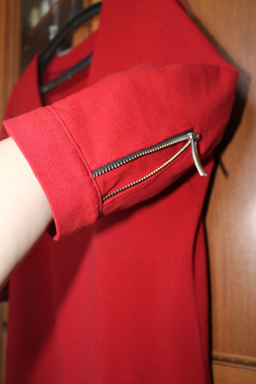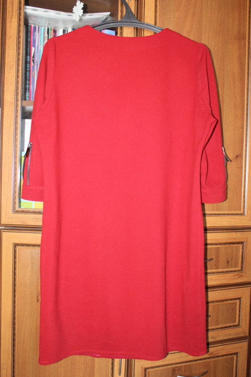 Кроила по футболке мужа))) Намучалась с рукавами,жесть просто. Силуэт прямой,рукава втачные с манжетой,горловина обработана обтачкой. В качестве отделки металлическая молния. Идею слизала с готового платья знакомой)))