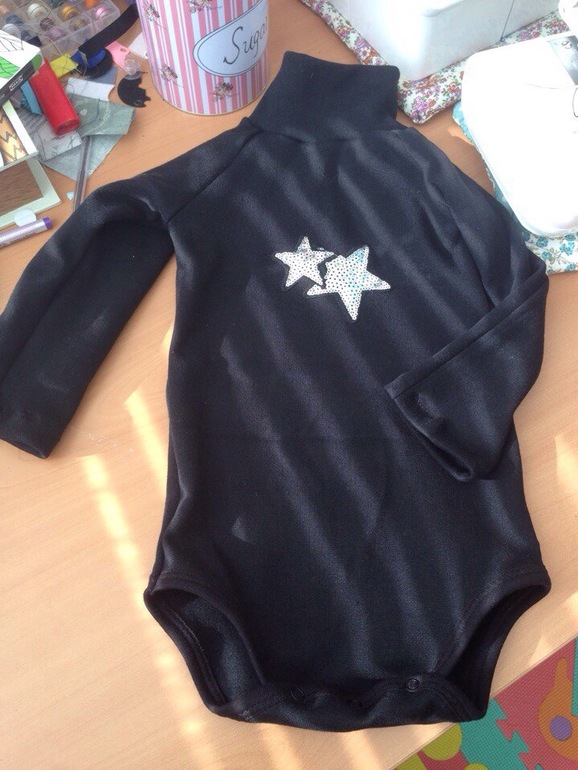 И бонус - бодик-водолазка из рибаны с начёсом. Сшила ей и сыну и влюбилась в эту вещицу для зимних прогулок. Выкройка из какого-то оттобре, не вспомню номер. Рукав длинный и воротник сама рисовала