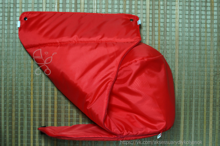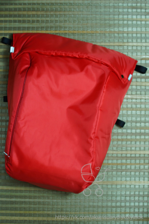 Накидка на ножки. Снаружи и внутри плащевая ткань, если испачкается, можно просто протереть. Утепленная, непродуваемая, непромокаемая. Для удобства с одной стороны молния. Светоотражающие элементы на отвороте и внизу молнии для безопасности в вечернее время. Крепление к раме на липучках в четырех местах. Большой отворот - когда малыш уснет, его можно накрыть от ветра.
