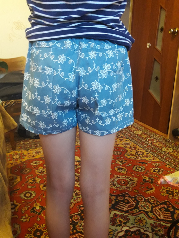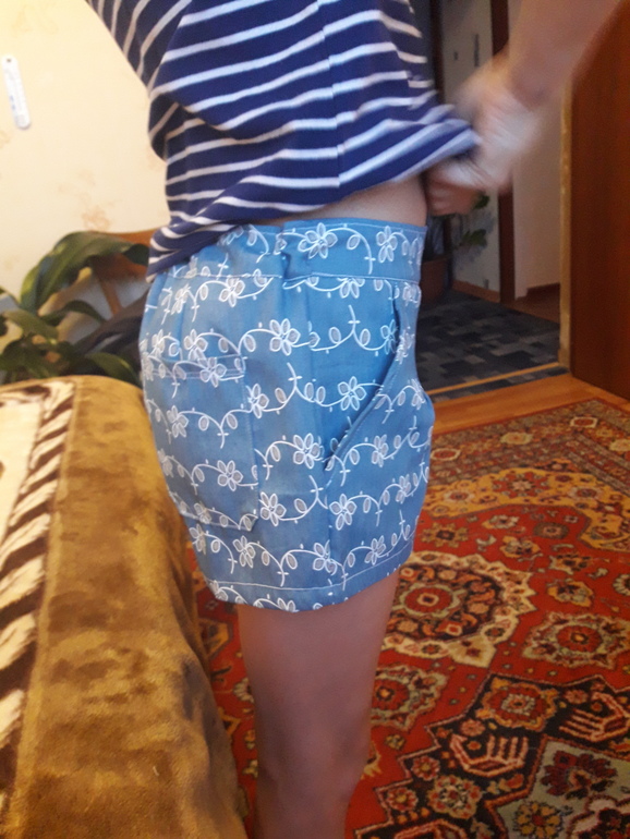 Ну наконец то, разжилась я желанными журнальчиками). Сделала себе подарок на др, купила 3 номера: 2/2012 зима, 4/2014 осень и 3/2017 лето. Шить я начала совсем недавно, около 2 месяцев. Шила до этого только из трикотажных тканей: кулирка, футер, интерлок.Выкройки брала с сайта Шкатулка, либо срисовывала с готовых вещичек. А тут ре шила сшить доче летние шортики.Ткань тонкий хлопок, не знаю как называется). Выкройка модель 34 из 3/2017.Размер 140, доча 143, но по объемам между 134 и 140.Получилось неплохо, для первого раза). Но, сзади по поясу оттопырились, пришлось вставить резинку и низковата посадка, на мой взгляд. Возможно, тут особенность фигуры). У меня так же. Мадам сижу у нас торчит назад)))) и все брюки оттопыриваются. На будущее буду делать выше заднюю часть и глубже вытачки.Вместо пуговицы пока булавка), плыть до города за пуговицей лень.