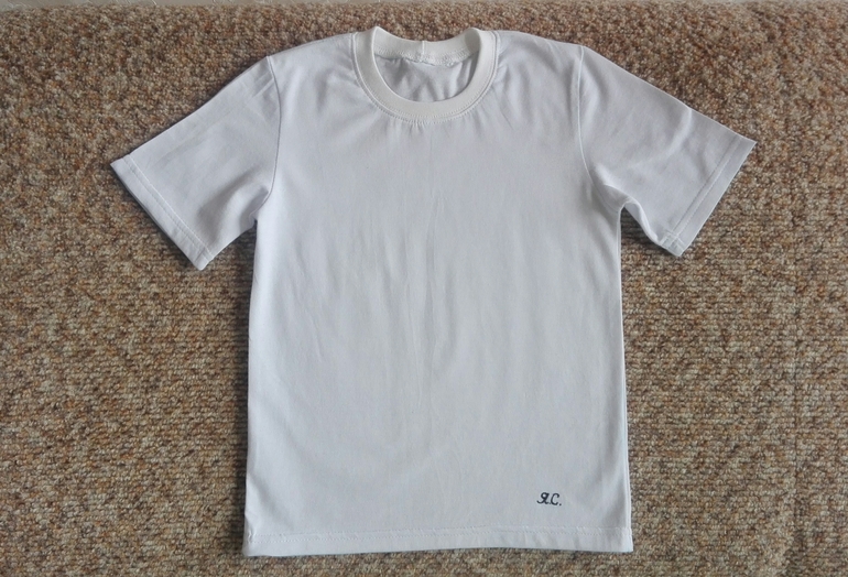 И футболка на физру в сад . Выкройка из оттобре 1/2014 м.17 рост 110 удлинненная на 2см. Кулирка хб и рибана на отделке.
