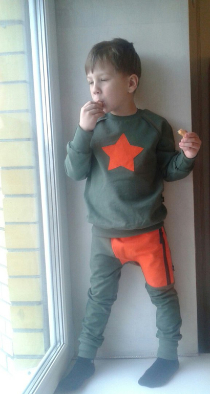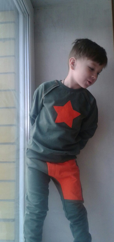 Какие классные ткани у вас, вообще супер, для мальчиков отлично подходит. И костюм со звездой понравился, сочетание цветов и вставка на штанах интересная