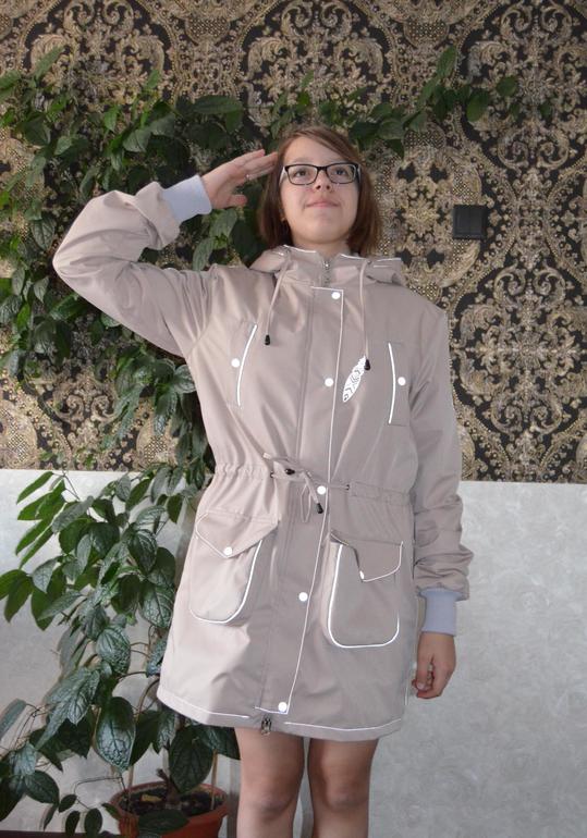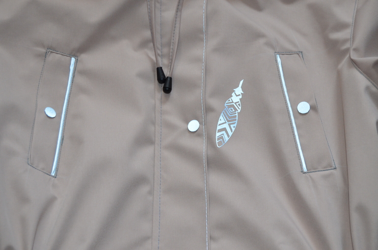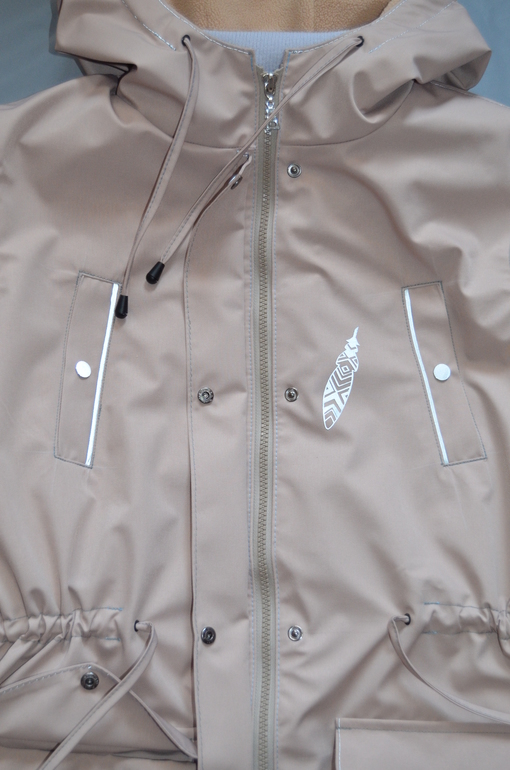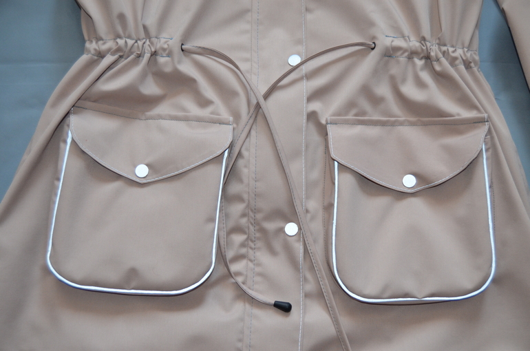 А, вот еще, купила ж я светоотражающие нитки попробовать! Отстрочка ими по низу, планке, капюшону - видите? О_О, сколько кровушки они у меня попили