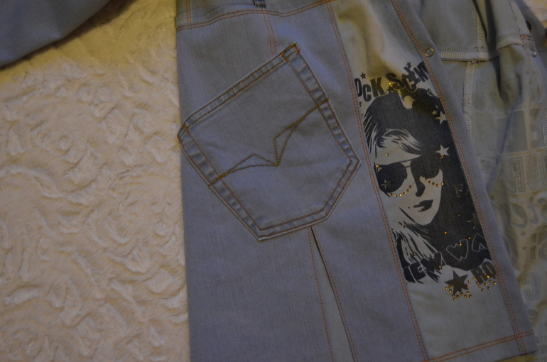И вдохновение делает ручкой. А тут как-то получилось что джинсы были зарезаны прежде, чем муза от меня ушла. Фсе, рукодельный зуд удовлетворен и хорошо еще, что Аня у меня маленькая и на ней можно подобные эксперименты ставить)