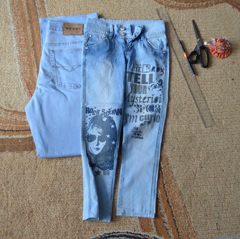Вот они, кстати. И рядом мои, зарезала их, потому что похудела и больше в тот вес не намерена возвращаться, стало быть они мне не нужны.