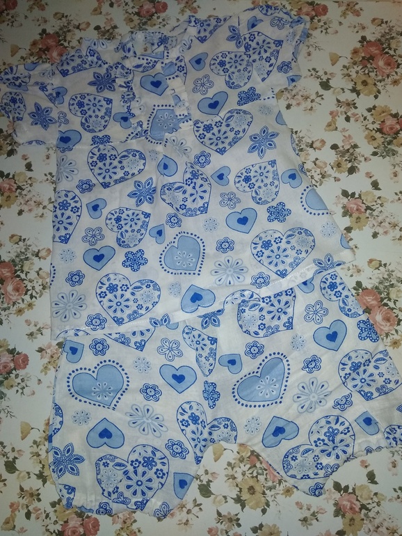 Единственный костюмчик, выкроенный из ткани, а не переделанный) кроила по самой удобной одежде дочки, сидят отлично, в жару носить самое то. Шила на пробу, из ткани которая уже давно лежала у меня. В планах повторить из качественной ткани
