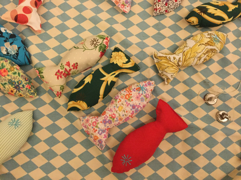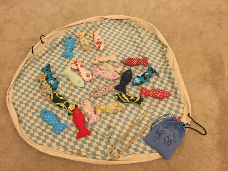 Рыбок сшила самым простым образом , просто не посчитала нужным заморачиваться и как то их украшать , делать фигурные хвосты или нашивать ленточки ...даже хвосты зашивала не потайным швом , а просто на машинке... рыбок желательно бы больше , но вот меня реально утомляет шить несколько одинаковых предметов ( и меня всегда удивляли и восхищали своим терпением посты с дюжиной одинаковых трусов 😅) , но я ещё соберусь и дошью ещё, хотя и так уже играли с дочкой