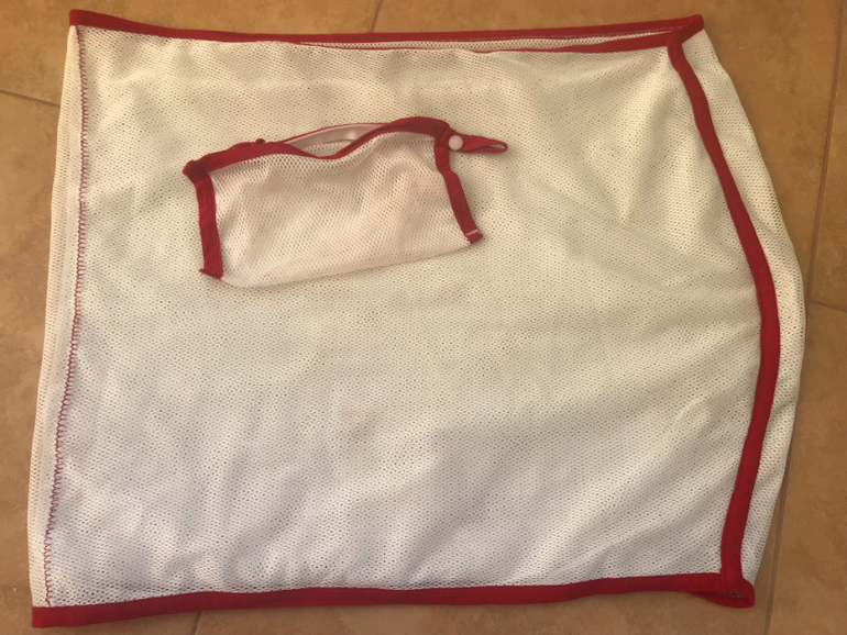 Делюсь идеей может кому-то пригодится. Карман шила из сетки подкладочной один слой кроила вдоль, другой поперек чтоб не тянулся сильно. Край обработан трикотажной нарезной бейкой ираспошивалкой. Кроила по замерам почти без прибавки, с этой тканью угадать сложно, мерить надо, но результат стоит того. Очень удобная вещь и в море заходить и на подхват если ребенок в коляске сидеть отказывается, то кинуть в сумку колясочную на всякий случай.