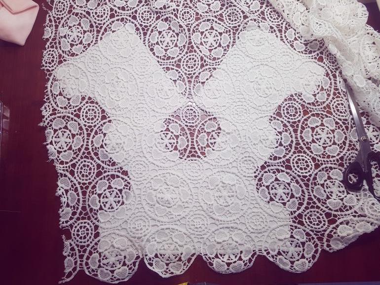 Кружево кроила на изделии и пришивала вручную, после полной сборки всех деталей.