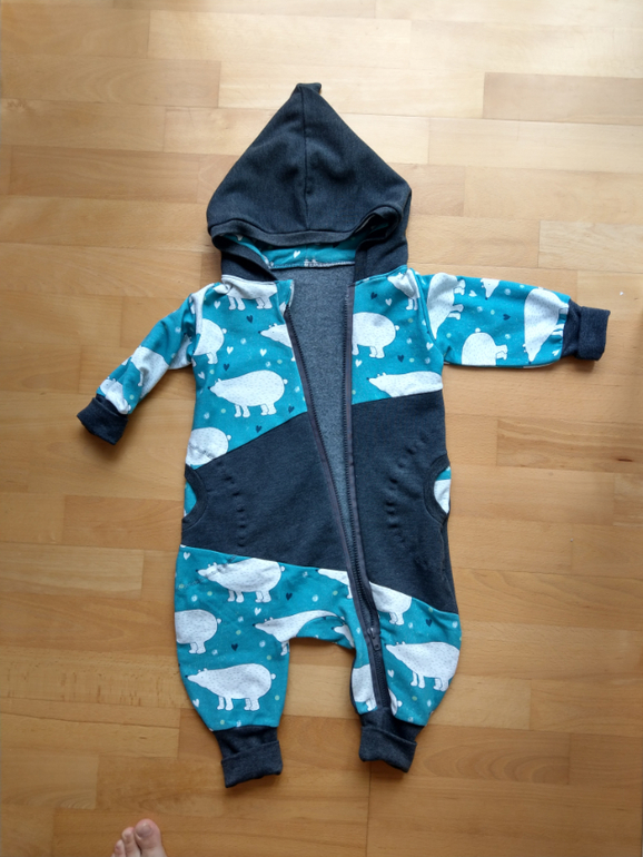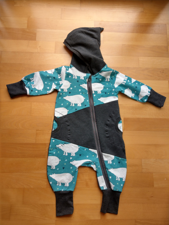 Еще сочинились два комбинезона. Раскроенные лежали с марта, и только в августе я на них решилась. Потренировалась вшивать молнии)) Выкройка обеих JollyJumper.