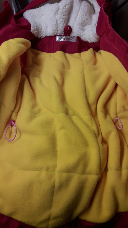 На спике и полочках флис, а на капюшон не хватило, был остаток, поэтому для мягкости и теплоты добавила искусственной овчинки.