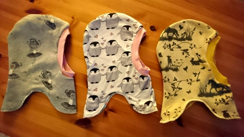 Подруга попросила для дочи пару шапок с закрытым горлом, ткани выбирала она сама.