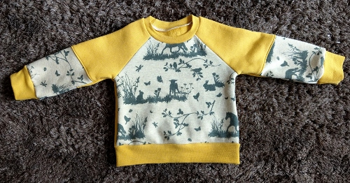 Третий свитшот из футера с начесом, но ткани с рисунком не хватило, добавила чисто желтый футер с начесом, и вещь мне самой тоже начала нравиться)) до этого думала, что за ткань такая некрасивая бледно-бледно желтая (это, конечно, чисто субьективное ощущение). А результат прям заглядение😍 Выкройка из ВК группы Идеи швейной феи.