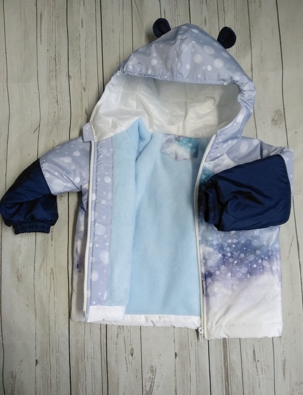 В капюшоне белая стежка, продублирована утеплителем. Стандартно петелька и защита от защимления.