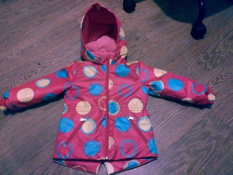Выкройка из оттобре 1-2013. Модель 12. Изменила низ и переделала выкройку капюшона. В этой выкройке он одношовный и мелкий ( во время дождя шапка спереди мокнет). Брала 92 размер на дочкин рост 90. Забыла расширить под утеплитель. Посмотрим, влезет ли в нее дочь осенью😉. Утеплитель альп 100. Подклад - флис и п/э в рукавах. Подклад без боковых швов- выворачивала куртку через рукав. Добавила трикотажный воротник.