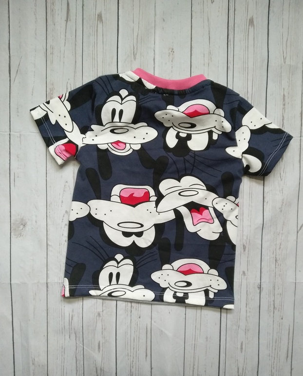 Остатки принта от лонгслива для сына, пошли на футболку 98 рр. Хотела сделать принтованный перед и рукава, а спинку однотонную. Когда выкроила деталь, поняла что это спинка. Поэтому вот так) аппликация из флиса