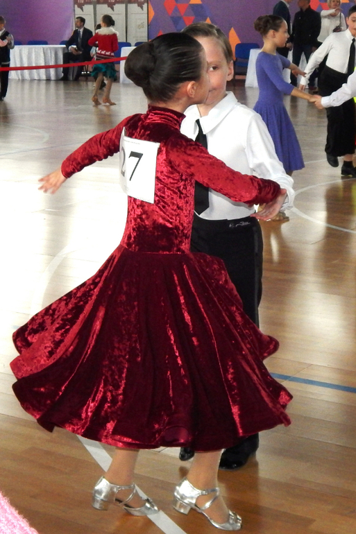 Бархат креш. Выкройка своя. 2 юбки по 1,5 солнца. Верхняя бархат, нижняя шифон. В верхнюю юбку вшит регелин, был только черный, поэтому вшит в подгиб и полностью закрыт. Край нижней юбки обработан атласной косой бейкой. Трусики купа из бархата. Юбки вшиты в подрез купа. На спине потайная молния. Всё по строгим правилам ФТСР.