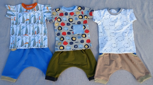 замечательный гардероб,нам по погоде еще рано ))) вполне себе первые бриджи сидят (от выкройки бы не отказалась), вот только кармашек на футболке повыше и правее просится )))92 р-р - смело ))) мы почти в 1,6в ширину в 68 р-р влезаем ))) в длину 74-80,а дочка в 3 года в 86-92 влезает в ширину нормально )) длина 98