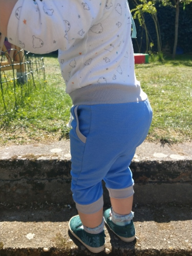 Штанишки первая модель тоже из оттобре 3/16. И тоже не прямое попадание в размер. У сына не худые ноги, и сидит впритык, наврядли до конца лета доносим наверное. Это при том, что шила я размер 86, а мы на него вот-вот на днях перешли, еще многое другое болтается.