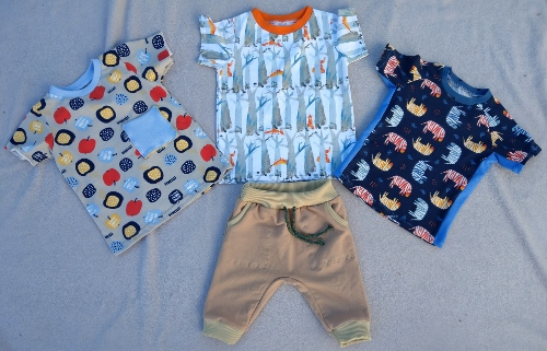Я уже шила набор на лето 92 размера, но сын взял и не дорос😁 поэтому в экстренном порядке шила на размер меньше, и мы уже успели немного поносить, в конце апреля в тени было несколько дней даже 21, на солнце соответственно чуть ли не под тридцать😅 Май гораздо холодней, если что.