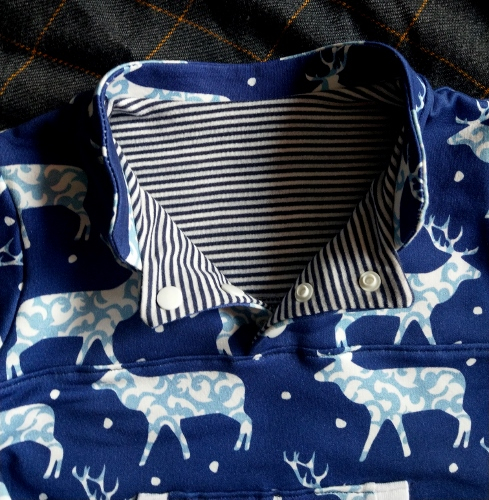 Новогодний пулловер по выкройке Stoffmixpulli Klimperklein, ткань футер двухнитка, внутри в районе спины и груди джерси. На пластиковых кнопках.