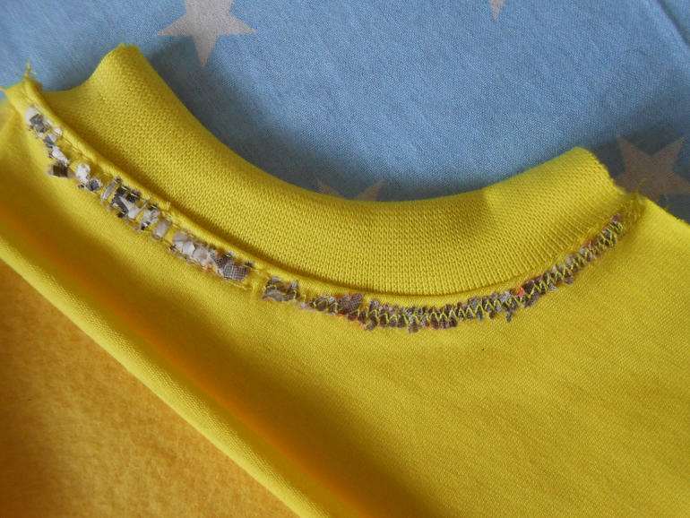 Шила на обычной бытовой швейной машинке. Футер машинка брала хорошо. Рибану только с газеткой. Специально делала фото изнанки, чтоб показать, что это: сложно, но можно)))