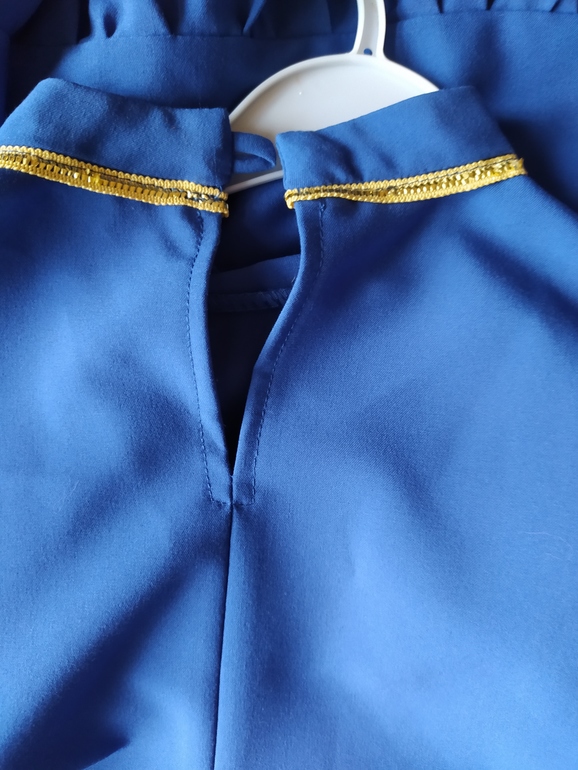 Вариантов застежки на горловине много, крючки как на бюстгалтере, пуговка с ножкой и ленточка или жгутик шнурочек. Можно пришить полосочку ткани с одной стороны и на нее маленькую липучку жесткую, а на само платье с другой стороны мягкую. Можно на этот же кусочек ткани пришить кнопку