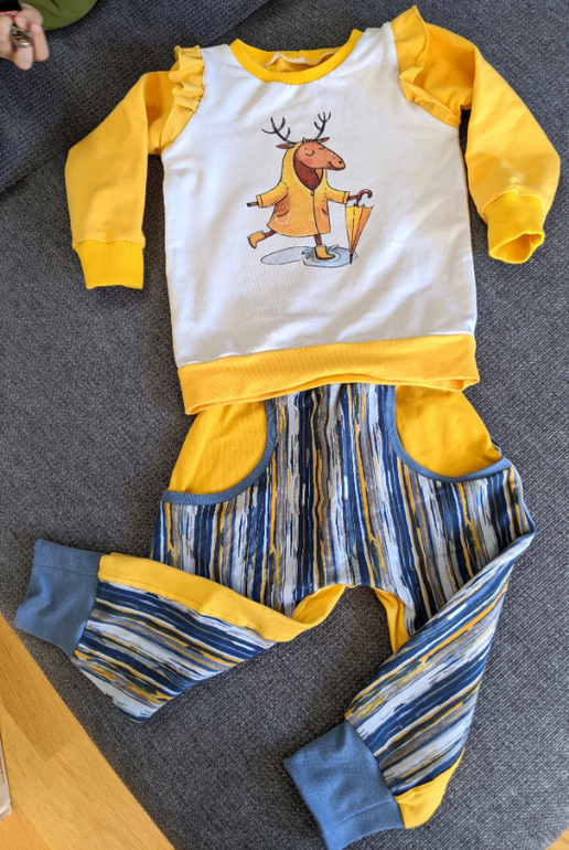Кофточка по выкройке Lybstes Hoody, крылышки на глаз. Штанишки без карманов от Lybstes Schlafanzug, с карманами Pumplang Emilio. Ткань везде футер-петелька.