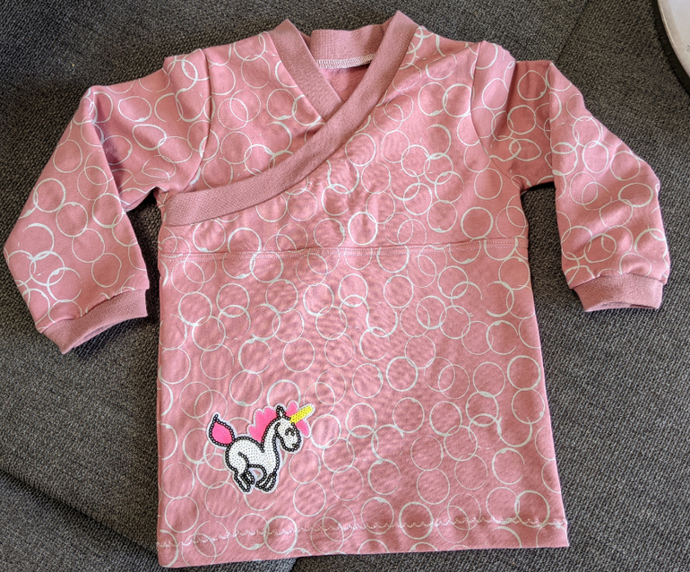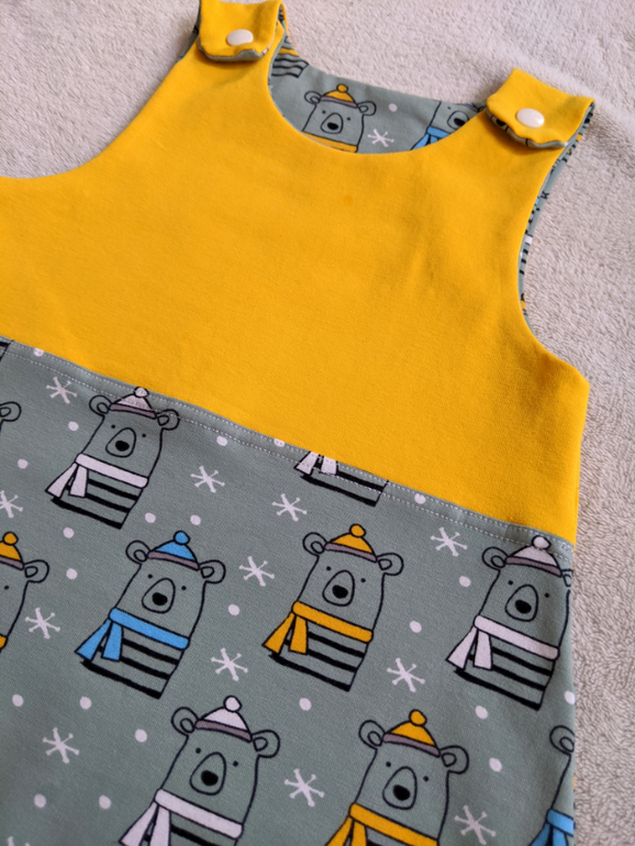 А вот это было сложно😅 вроде и выкройка знакомая Jolly Jumper от Lybstes, и из софтшелла как такового я шила, но в таком маленьком размере все скользило и выскакивало, машинка плевалась и отказывалась делать швы, несмотря на специальную иголку. Уфф, буду иметь ввиду, что такие маленькие лучше из тянущихся тканей шить.
