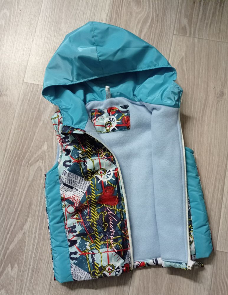 Шьем детямУтеплённый жилет с капюшоном 92-98. Выкройку снимала 92 рр 2013-1 мод 12. Утилизовала остатки принтованной плащевки, которая осталась от пошива куртки сыну.