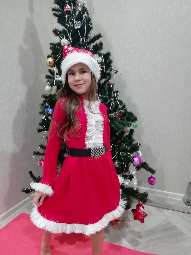 Платье девочки Санта Клауса. Колпак покупной. Под срезом ещё много других вещичек)
