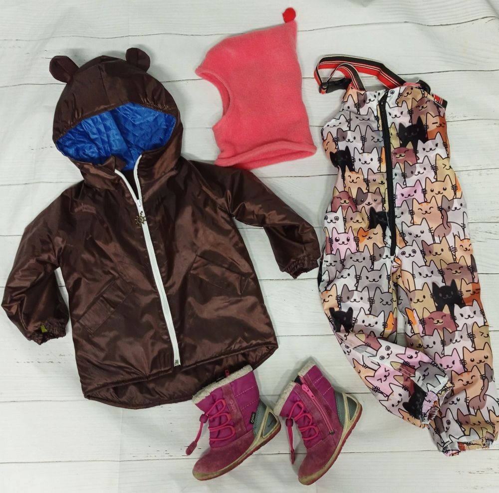 Планирую носить на погоду 0+ с розовым флисовым шлемом и сапожками