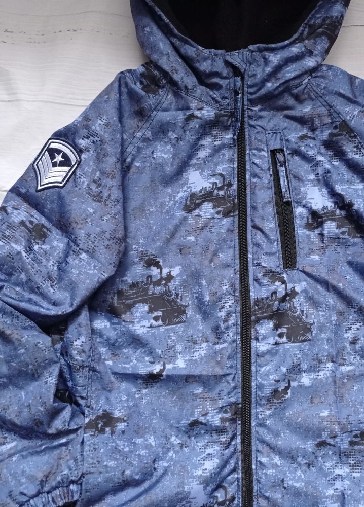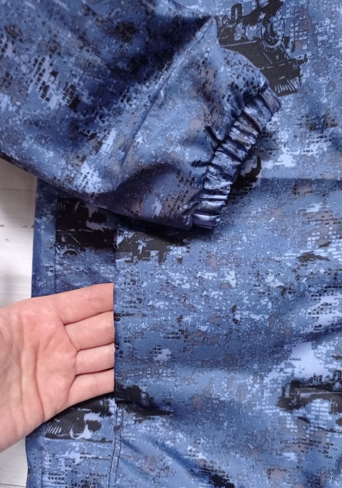Ну и ветровка на флисе с принтом паровозы. Выкройка та же, есть капюшон