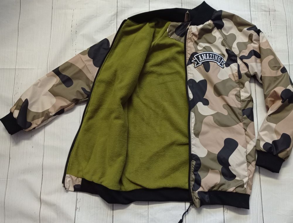 Оба изделия из запасов. Долго не могла решить, что сшить: ветровку на флисе или бомбер. Сшила в итоге обе вещи, бомбер сделала с запасом по росту и рукавам. Выкройка оттобре 1/2013 рр 128, увеличенный до 134. Ткань верха плащевка, на подкладе оливковый флис, манжеты кашкорсе.