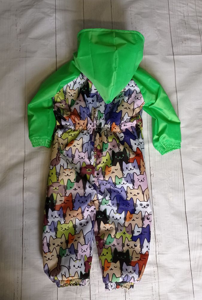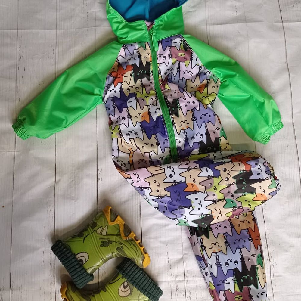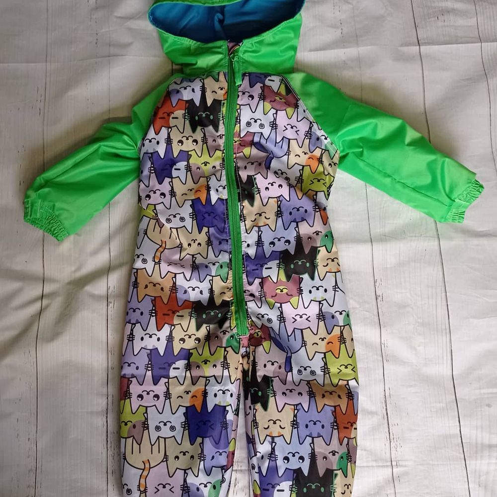 Первое, что бросается в глаза, перед выкроен вверх ногами. Изначально планиповала комбинезон полностью из принта с салатовыми капюшоном. Но после раскроя спинки, с трудом хватило на перед и ткани осталось на один рукав. Пришлось по ходу менять задумку. Далее один манжет сшила изнанкой вверх, после того, как вывернула комбинезон, обнаружила, что защиту от защимления сделала не того цвета ну и отверстие для выворачивания забыла оставить, пришлось подпарывать штанину. Вот это очень не люблю. Зато молния получилась отлично, следом буду шить дочке Деми комбинезон на осень, хотя может и летом одеть доведётся, потренировалась. К функционалу претензий нет. Получилось ярко.