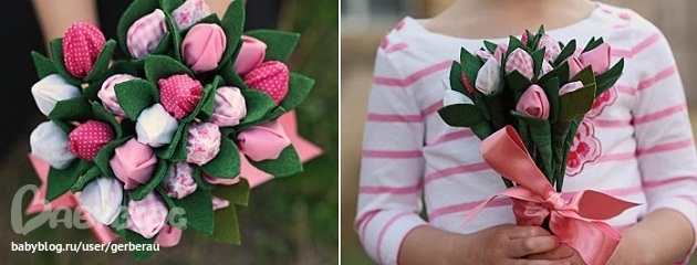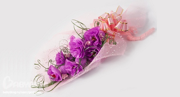 Мне очень нравится делать такие розы в букетах, плюс в том, что не нужно использовать клеевой пистолет, и опять же - деткам можно делать вместе с мамами букеты подружкам и близким людям.