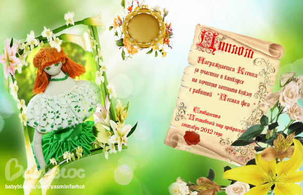 Огромное спасибо за создание дипломов моей инет-подруге по цветочному сайту Снежане Шмариной