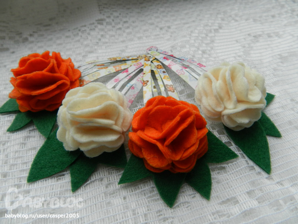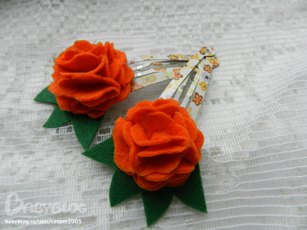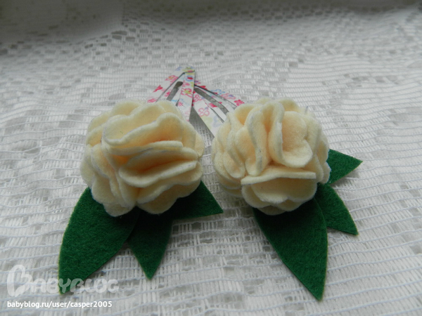 3. Заколочки "Мини-розочки" - испанский полушерстяной фетр, зажимы. Цена 100 руб. пара.