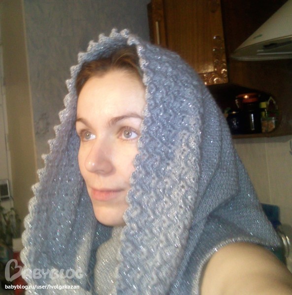 ВязаниеЕщё не довязала чуть-чуть, а уже хвастаюсь. Не сдержалась... Безумно понравились мне снуды, ну буквально "заболела" ими! Сначала долго бродила по интернету в поисках вдохновения, просмотрела около 200 фотографий, потом искала самый красивый узор крючком, потом обошла все магазины в поисках пряжи... Скажу сразу, ещё ни одна работа не доставила мне столько удовольствия, хотя вязание продвигалось очень медленно - малыш стал очень мало спать днем и то, во время его тихого часа я бываю дома только по выходным.... И чтобы вязание хоть как-то продвигалось, я стала вставать на час-полтора раньше, чтобы успеть хоть пару рядов связать до ухода на работу. И вот сегодня не удержалась, решила пофотографировать то, что получилось, чтобы посмотреть как это со стороны смотрится. Мне так понравилось! Даже форма получилась в точности та, какую я хотела! Не устраивает только, как он сидит на макушке, мне бы хотелось чтобы он не топорщился, а аккуратно ниспадал вокруг лица, но я обязательно придумаю как это исправить... Мне кажется тут все дело в зубчатом крае, я сначала так и задумала его, но теперь вижу, что он выглядит немного грубовато, нужно придумать что-то другое. А пока показываю что получилось.
