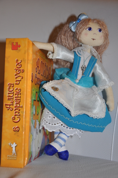 шилась эта куколка для подруги, с которой я познакомилась 7 лет назад через интернет на одном творческом сайте. тогда у неё ник был связан с чудесной сказкой Кэролла, которую я сама очень очень ОЧЕНЬ люблю! скоро у подруги ДР, и я надеюсь её немного порадовать!