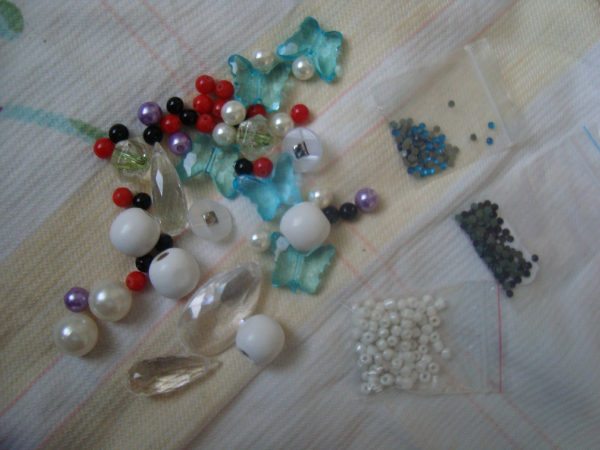 И чуть не забыла, бусинки. Разные, много. Очень много. Но их тут же скомуниздили у меня.....
