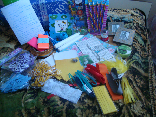 Юленька!!! Спасибо тебе от всей души! Спасибо за несметное количество необходимых мелочей, которых действительно уж очень нехватает!!! Спасибо за теплые слова, спасибо за потраченное время на подборку подарков!!!!! Спасибо тебе от всей души!!!!!!!!!!!
