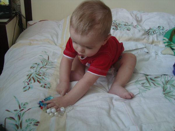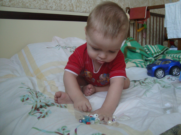 Сын проснулся не вовремя. И начал наводить ревизию в подарках ))))