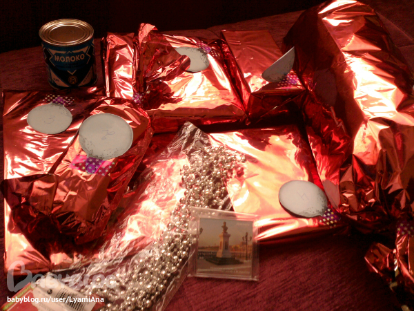 Подорочки обернутые в упаковку, сохраняли интригу, и пока я начала читать "кто-где-когде", пошли в расход упаковки, доставались подарочки.... И это все больше и больше прибавляло радости всем нам!