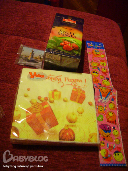 Новогодний ОП 2012Нам пришла посылочка в субботу. Папа с утреца нам ее с почты принес! Мы даже не собрали еще кровать, только умыться успели, как скорее к ней понули руки!