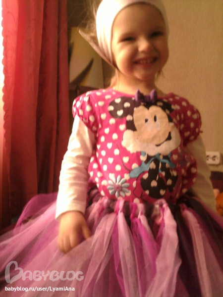 Была повязочка на волосы и прелестная юбочка! Я как раз хотела такую сделать, даже заказа цветной органзы, но из-за болезней всякских, так и не доехала получить. Вот как это выглядело тут же :)