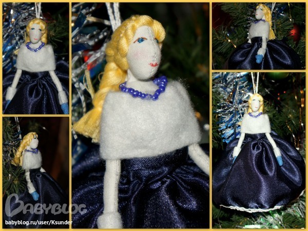 -Текстильные куклы.Сшила небольшую куколку для своей мамы. Мама так далеко, но эта маленькая снегурочка уже у нее)))) Провела небольшой эксперимент с лицом, вышила не только глазки, но и губки. На ваш суд)