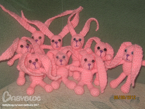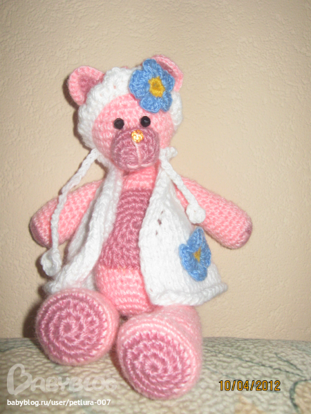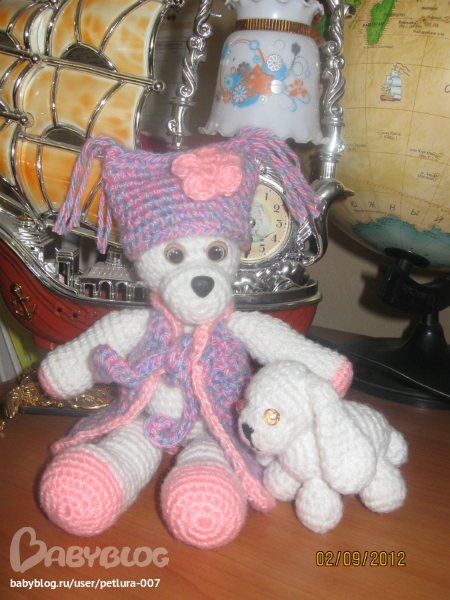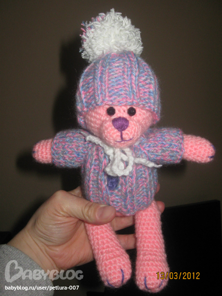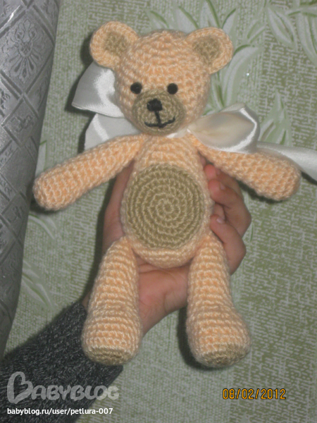да он лежит бедный без лап)))) все руки не дойдут довязать)))) конечно получится....я тут решила всех довязать, что начатые лежат...сегодня заю новую закончила в солнечном сарафанчике)))) и мишку-осталось только одеть...следующий пушистик из твоих ниток....а потом уже возьмусь за голубей свадебных-уже двое просили....а я все никак(((
