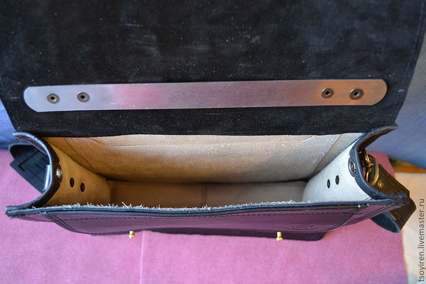 Внутри кожаная подкладка, карманы из подкладочной кожи. Клапан отделан кожей велюр.