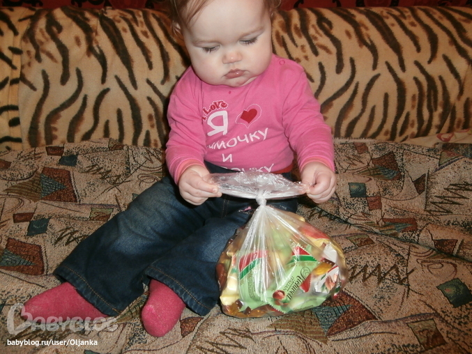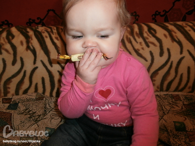 Зайка тоже заценила сладости, правда недолго её счастье длилось, родители отобрали...